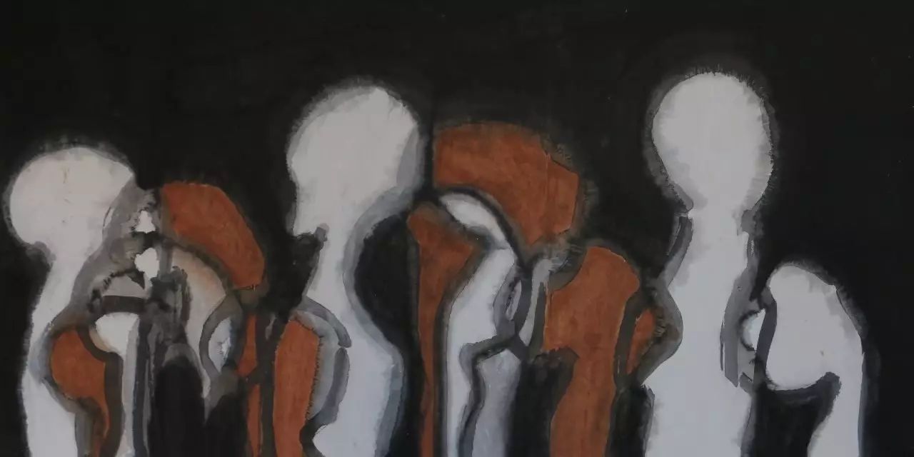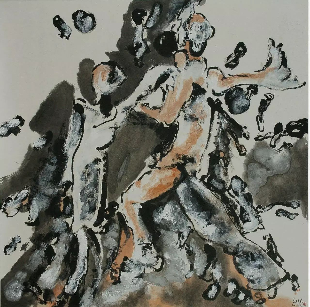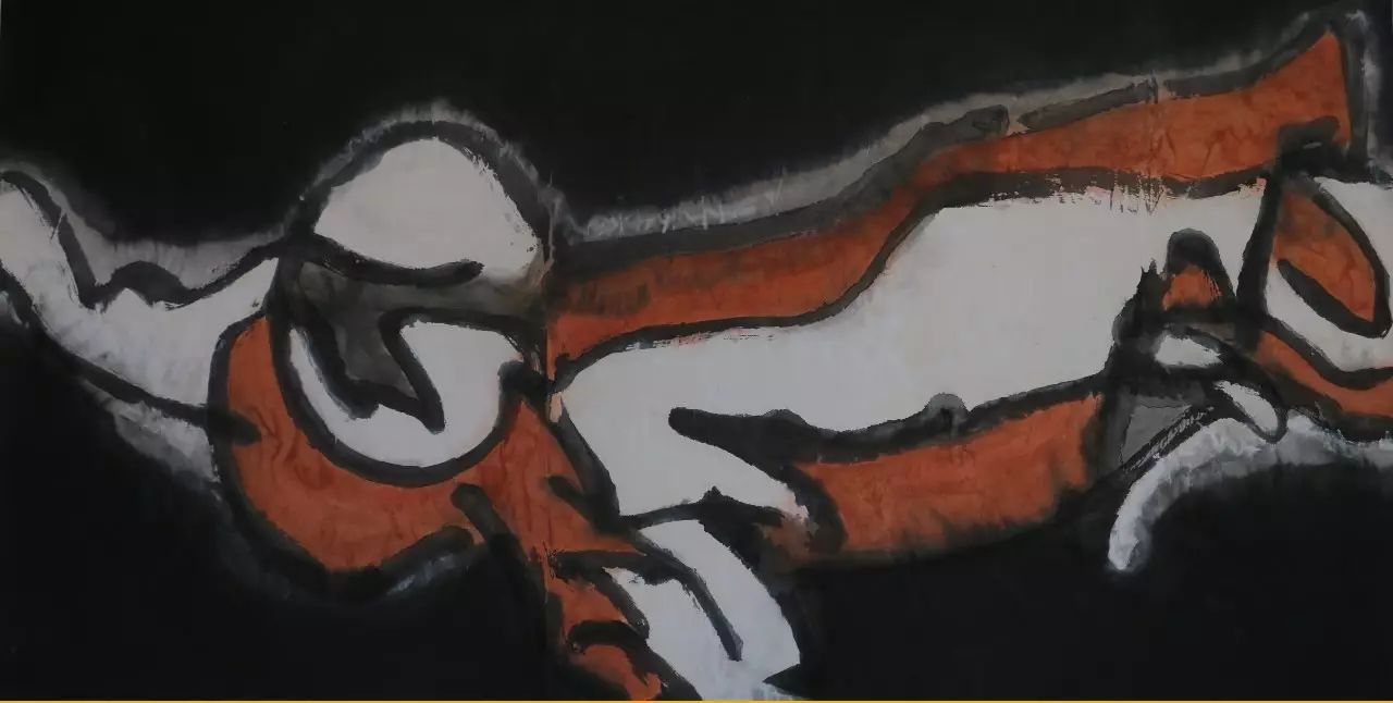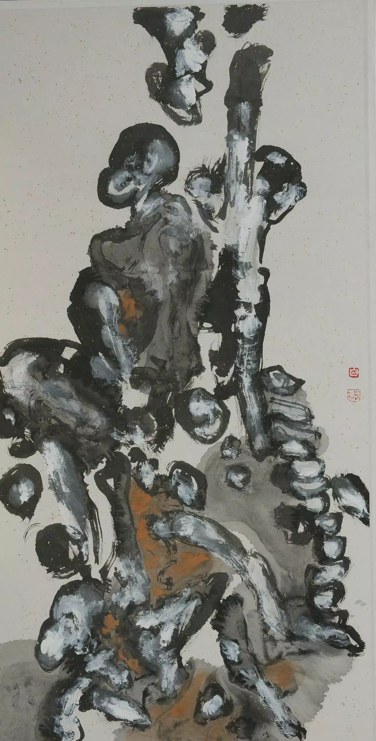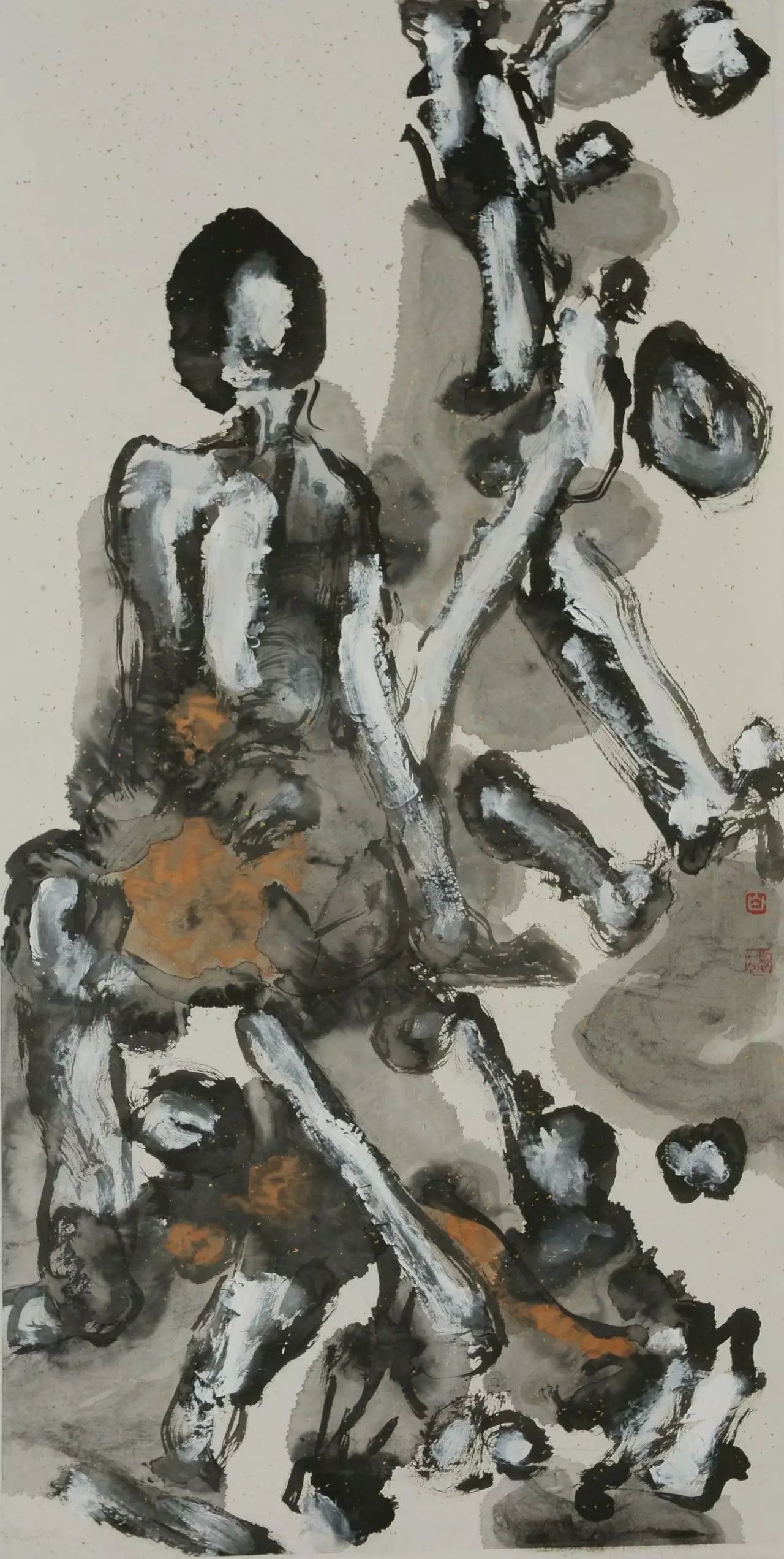 ▲《灵与肉的交战》137X68CM 水墨宣纸