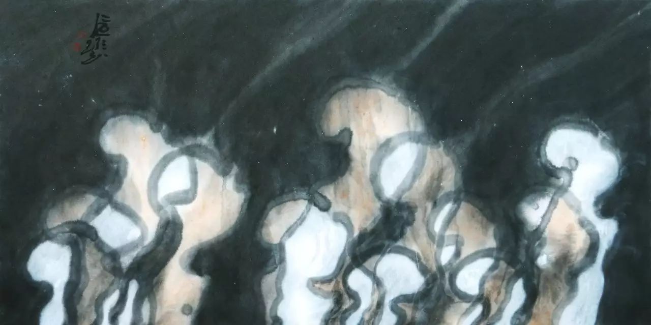 ▲《灵火焚烧》68X137CM 水墨宣纸